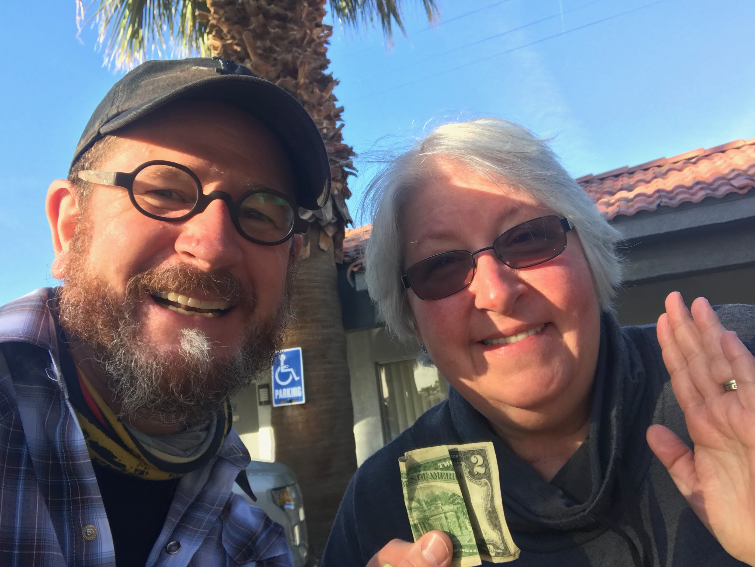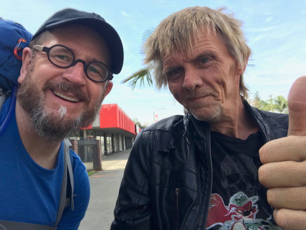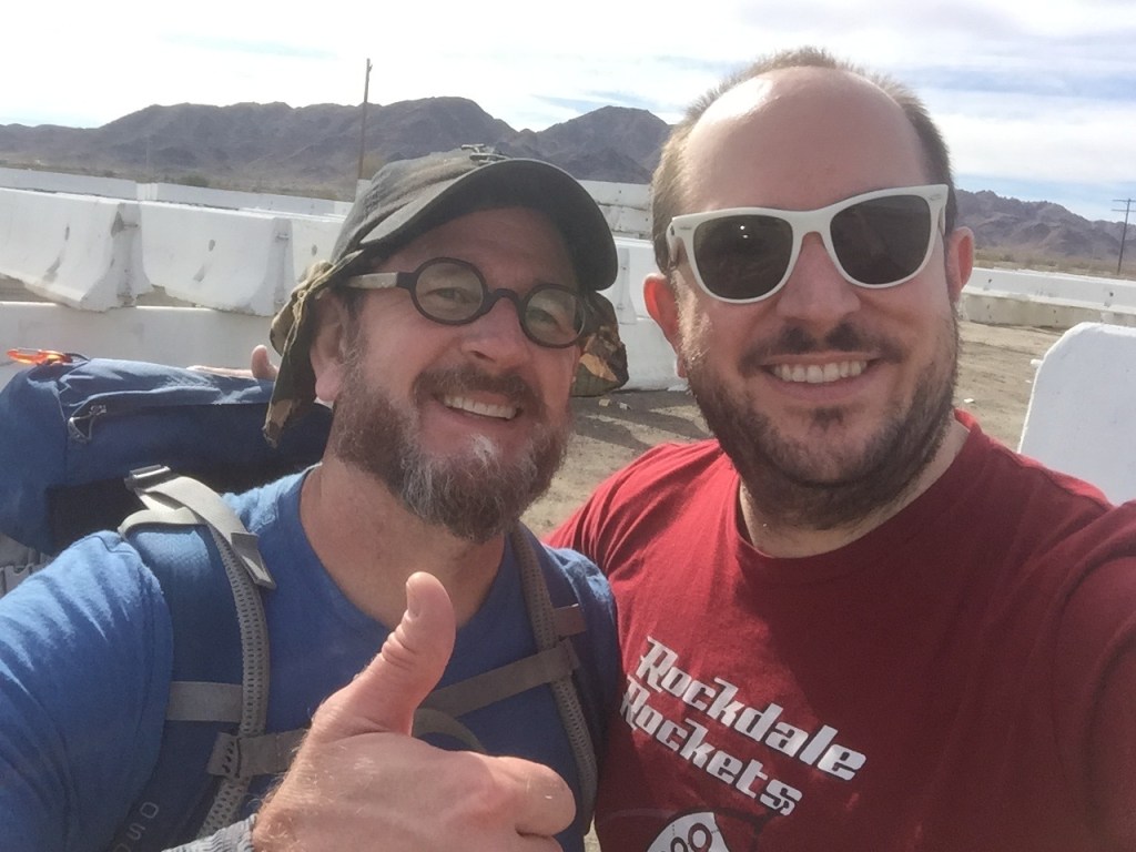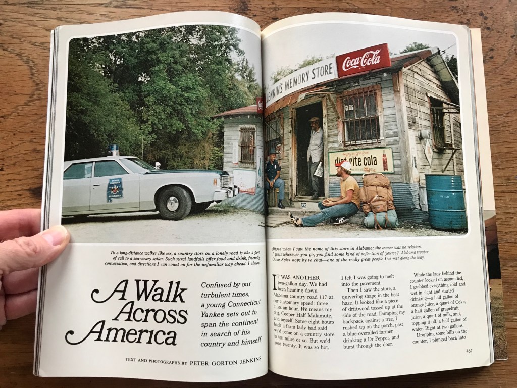 First campground – just off the Pacific Coast Trail near WhitewaterJoanna in Palm SpringsThe Bradshaw Trail – one of the photos I texted to Katie. CLICK HERE to see the video I made when dehydration started to sap meJoel rescuing me at the Red Cloud exit on Interstate 10 near Desert Center, CAHoliday discardMakeshift hotel massagerAnother one of my rescuers, David HumeMy foot injury intake with Charles at the Phoenix VABye bye backpack, hello Little Buddy!Leann from Wisconsin and her lucky two dollar billsAbout to cross the CA border CLICK HERE for a video of my 1st border crossingThe kraakteken symbol I found near Ehrenberg, AZ when I realized things were falling apartNational Geographic: April 1977The article that changed my life.Moral support from dear friendsArt: “This walk you’re doing is cool, but it’s not about you.”Back at it near Salome, AZ