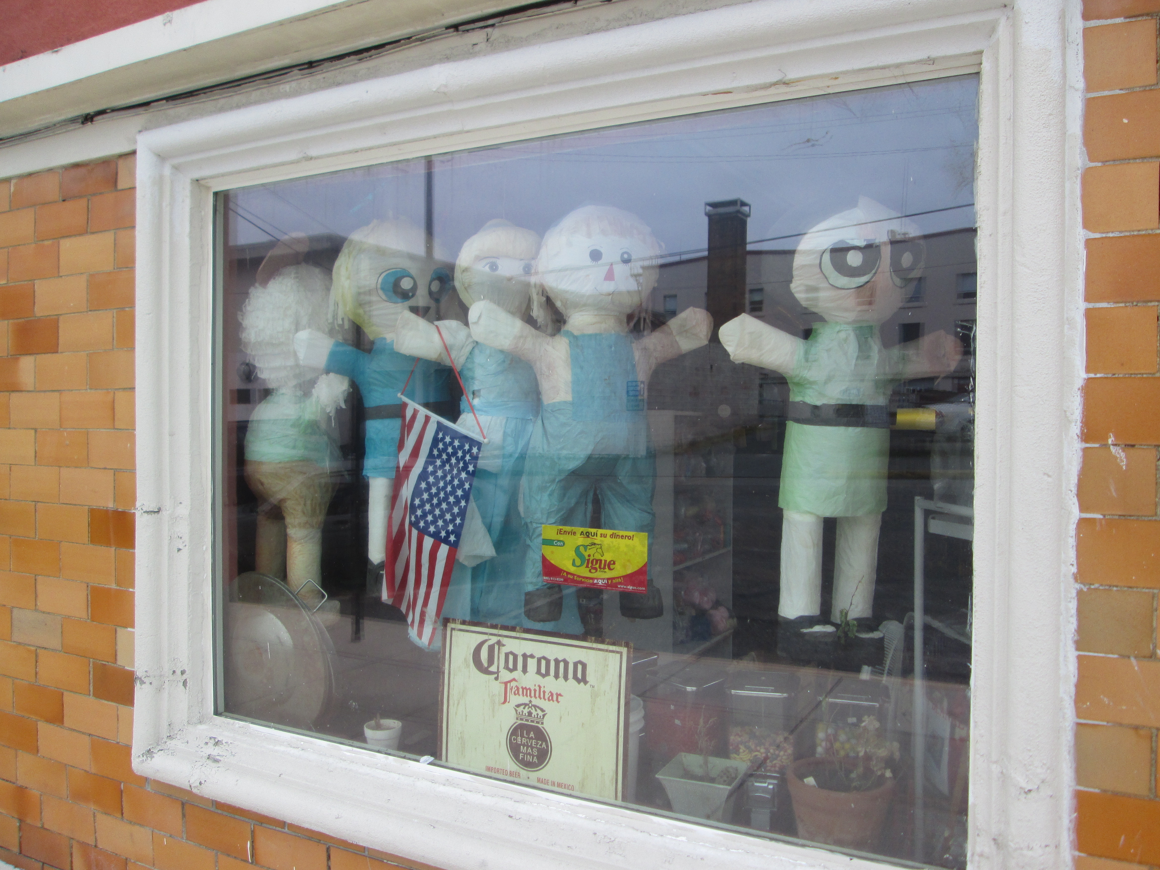 Children Pinata’s above the Corona signage. Why would anyone have a pinata that looked like a child? It is very strange indeed.