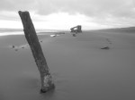 Three more times they buzz me – we wave at each other with gusto. It continues to pour and the temperature drops considerably. I try and run to stay warm but can’t keep up the pace and pounding with the pack on. My pants are soaked and I am chilled to the point of shivering. Ahead I see something big in the sand. An hour later I stand before the hundred and eight year-old wreck of the Peter Iredale, a four-masted sailing vessel that ran aground after trying to enter the Columbia River. I ask a man with a camera around his neck if I’ve made it to Ft. Stevens and he says yes. And though I’m not officially done with the hike, I’ve made it to Oregon’s northernmost state park. Tomorrow I will dip my toe in the Columbia River and mark the completion of my coastal journey. But for now I’ll revel in the day’s adventures and get some shut eye at the hiker biker camp, still two miles east. I desperately need to get out of these wet clothes.