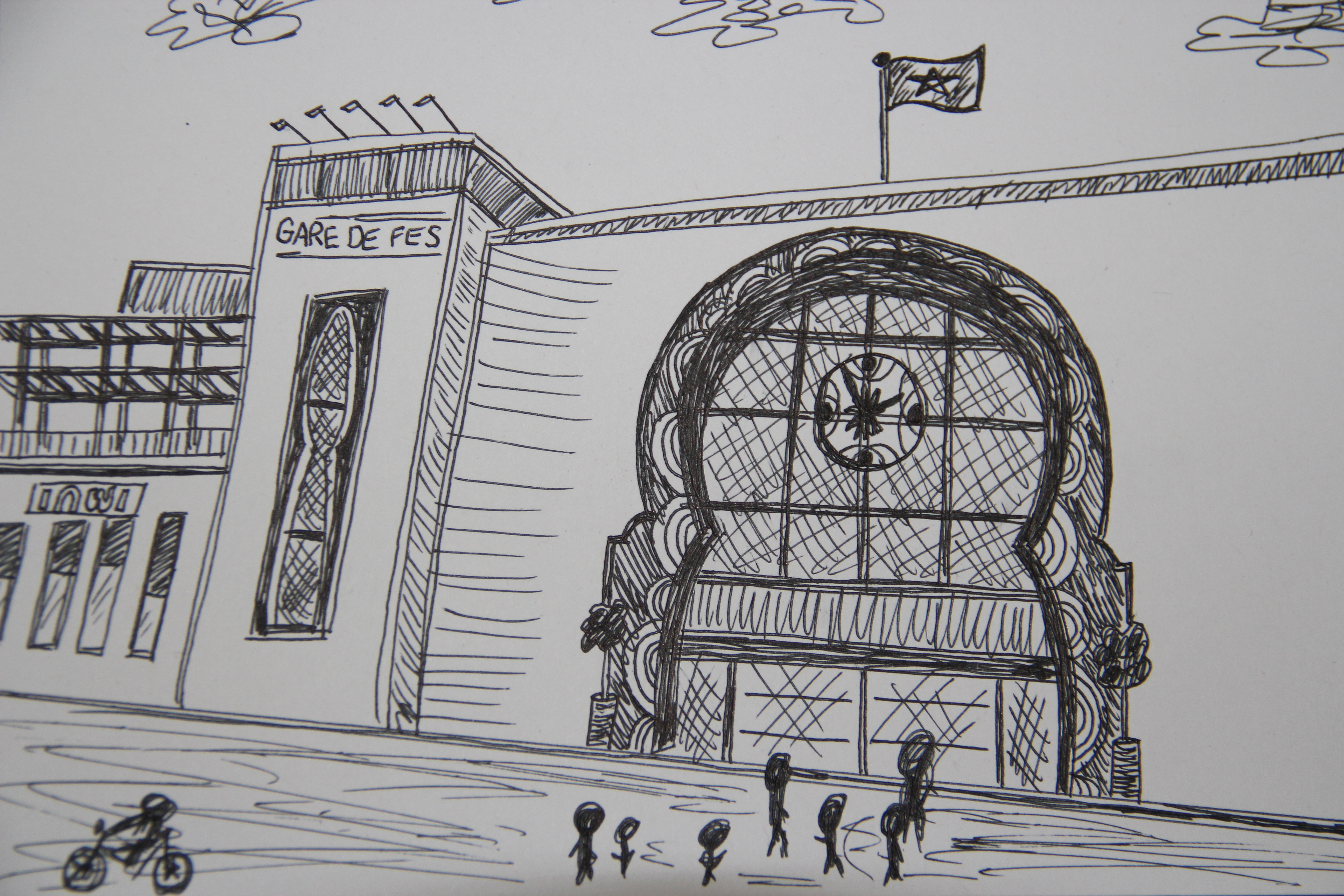 As I boarded the train to Marrakech I found an empty, 6-seat private box and claimed it as my own. Wasn’t long before I was joined by an older woman wearing a djellaba and headscarf. She gave me a quick glance, piled her three bags on floor then balled up into a fetal position and took a nap on the bench. As I watched the landscape pass by, I read a little poetry and jotted travel notes in my journal. When the woman woke up she wasted no time engaging me in conversation.