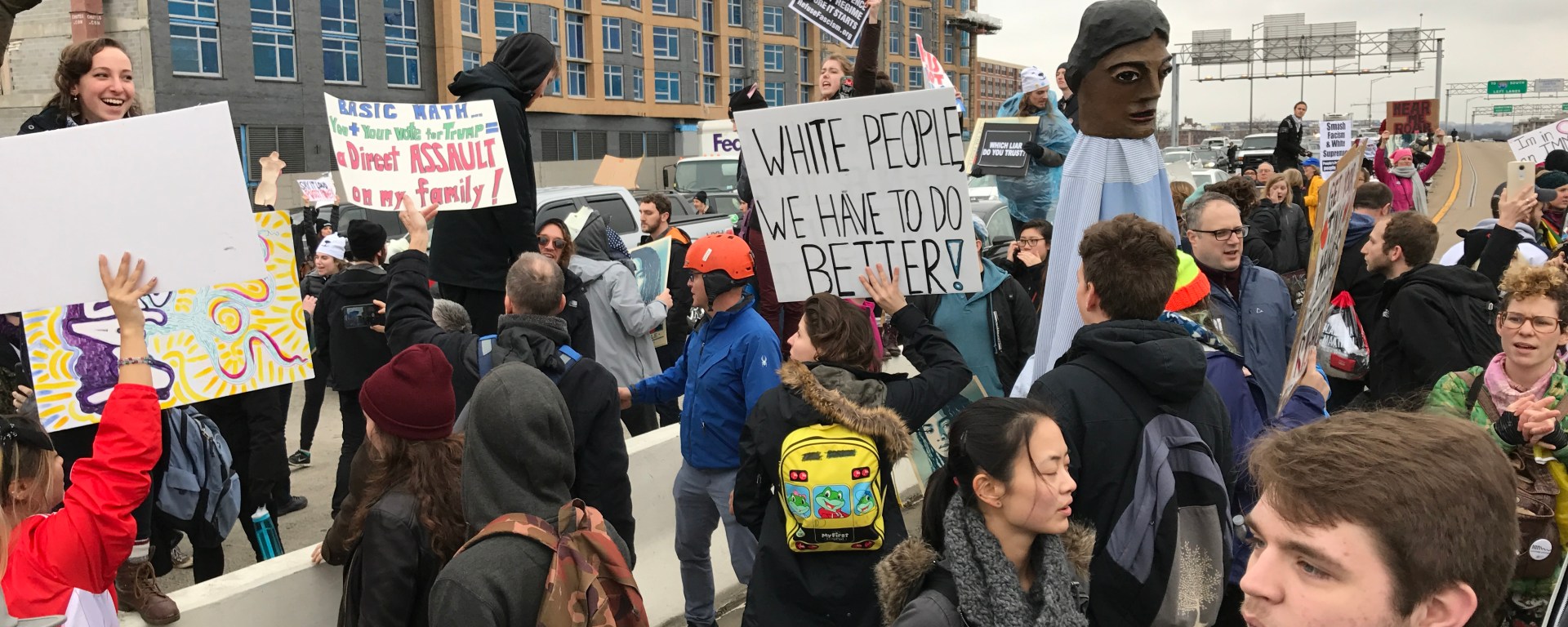 As soon as I settled into my seat, listening to Michael Moore give nearly the same anti-Trump speech he did hours before in McPherson Square, first Demi, and then later, Paris (our server from breakfast ten hours prior) commented on my shirt. Both simply thanked me for wearing it. And as simple as this moment sounds, I obviously needed this sort of validation from people of color. Because with each comment, I found myself sitting up taller.