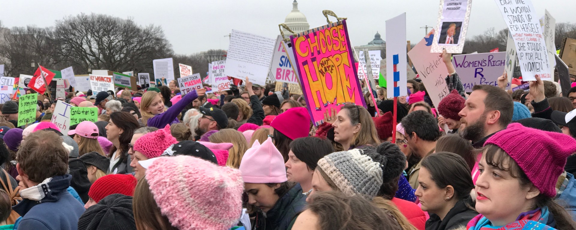 The last time I had seen the Washington D.C. Metro so jam-packed was back in 1993 when I lived in Virginia and was returning home with my friend Becca after a Grateful Dead concert. And really, there’s no way it could have been as crazy busy as it was on the morning of the Women’s March, Saturday January 21st. After all, 500,000 people converging from every corner of the US take up far more space than a capacity crowd spilling from RFK. Still, it was nutty. Took Katie and I nearly an hour after getting off the train to finally exit L’Enfant station.