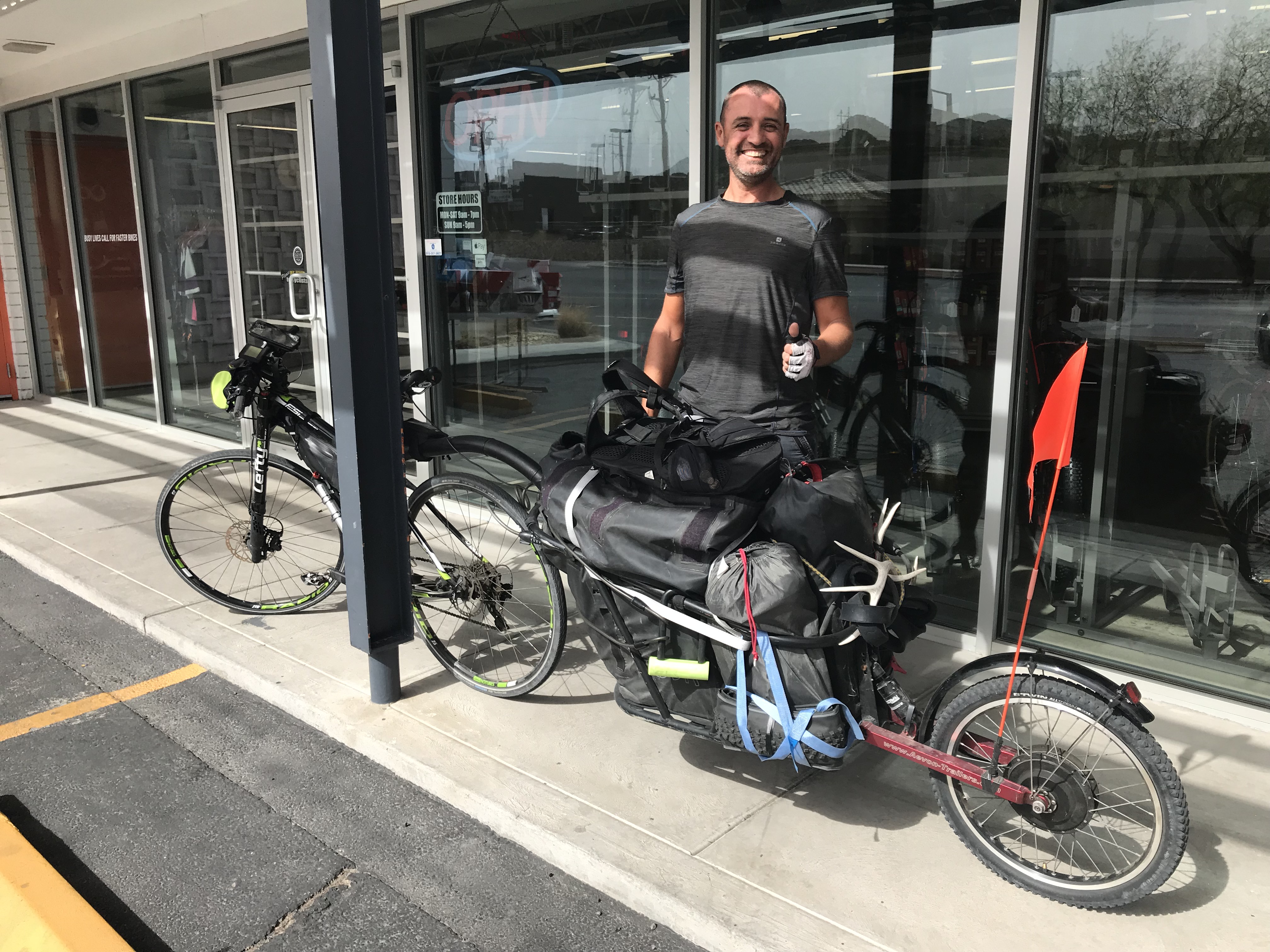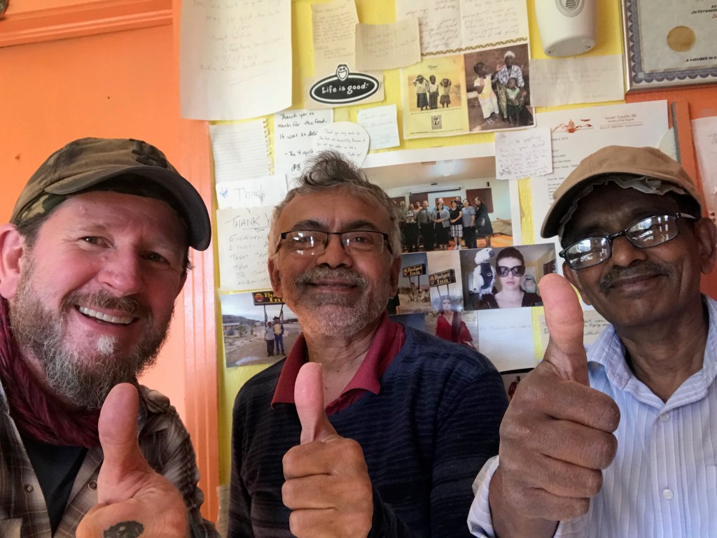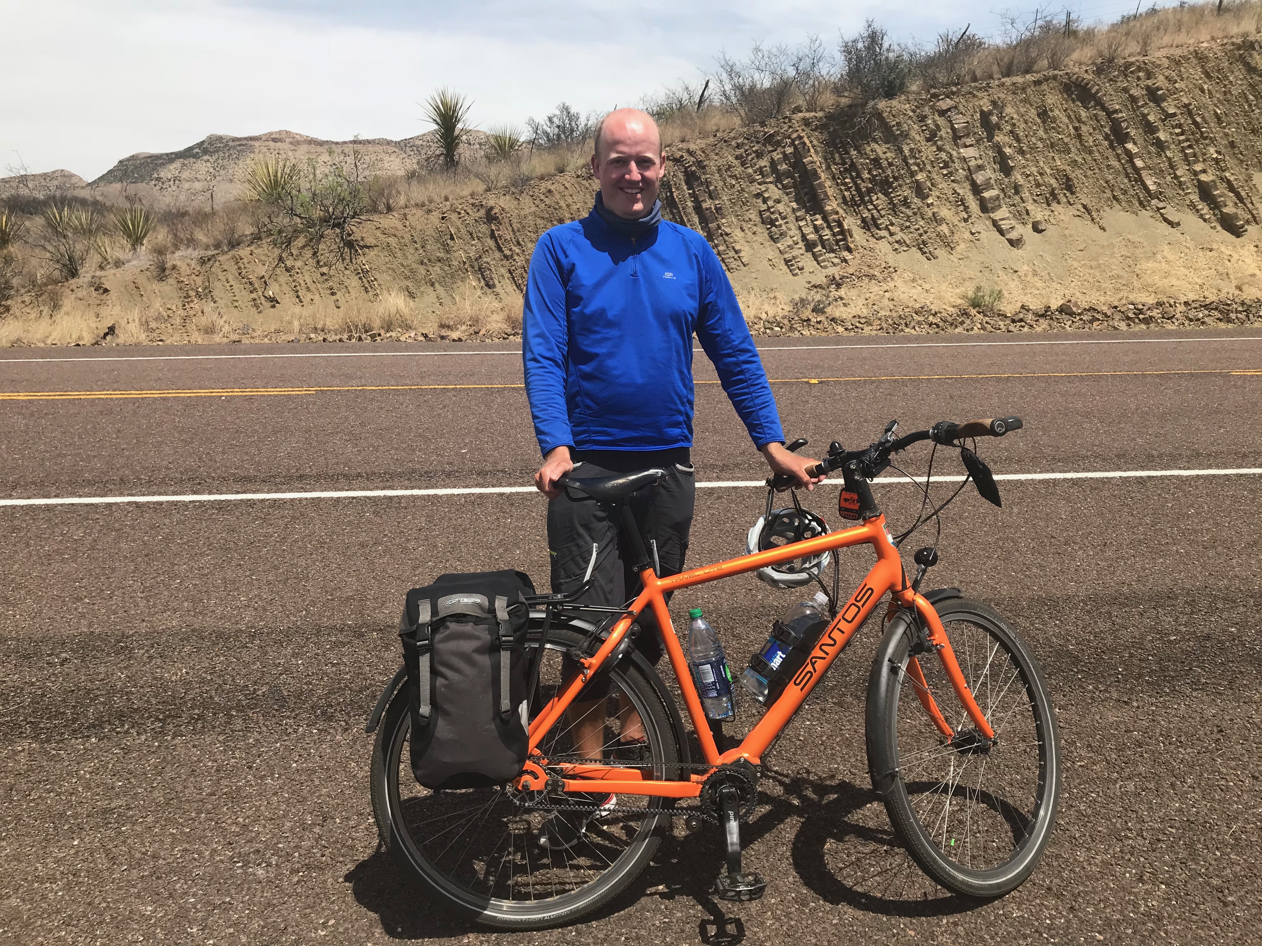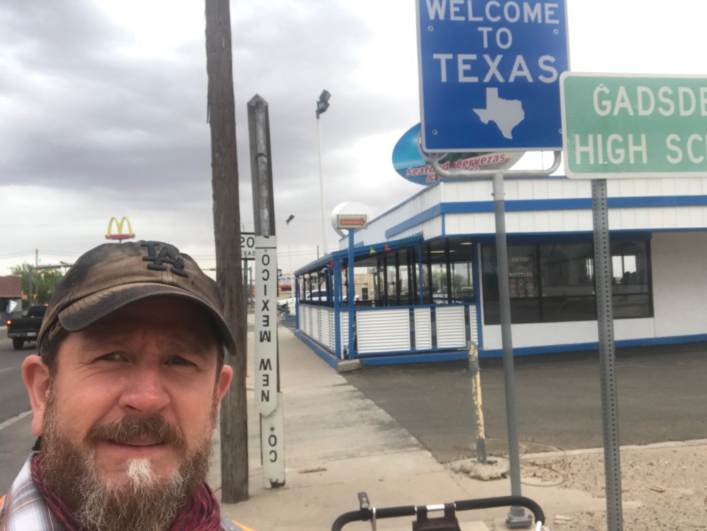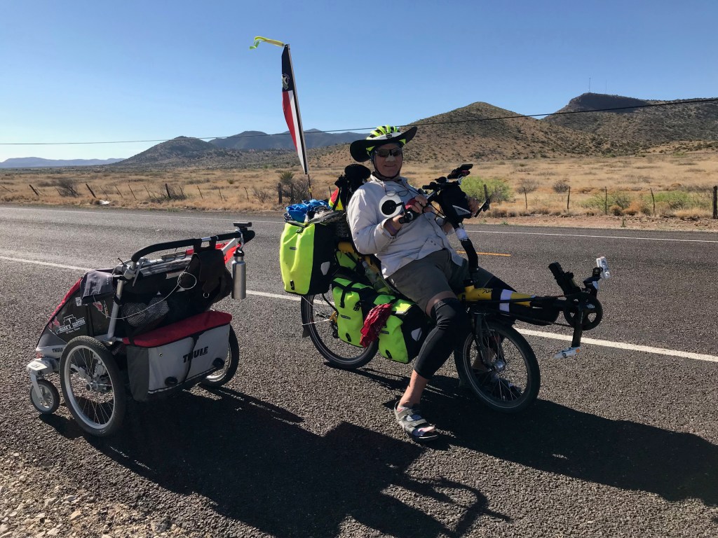 5 Made it to Texas! CLICK HERE for a video of another border crossing Construction on the approach to El Paso Amédée, French healer cycling around the world My sister Lisa on business in El Paso CLICK HERE for a video of me playing with dolls A generous family near Tornillo, TX Plainview Lake campground CLICK HERE for a geese attack Feliz Pascua! CLICK HERE for a Happy Easter video from Sierra Blanca Chuck, Sierra Blanca motel proprietor Emilio’s tattoo Van Horn, TX Officer Schlaudt Richard – Dutch cyclist crossing the USA for the 2nd time Elroy Whitworth – a far distant cousin of mine “Retired” Ron – giver of breakfast treats Me, Danny, and Sunny in Sanderson, TX Bill and Tim, cross-country cyclists CLICK HERE for ghosts riding on a swing set Share this:TweetLike Loading...